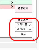 クリックすることにより右端に週の合計金額が表示されます。