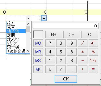 金額入力は金額欄にカーソルを当て、手入力するか、プルダウンをクリックし、電卓を出して電卓上で入力し